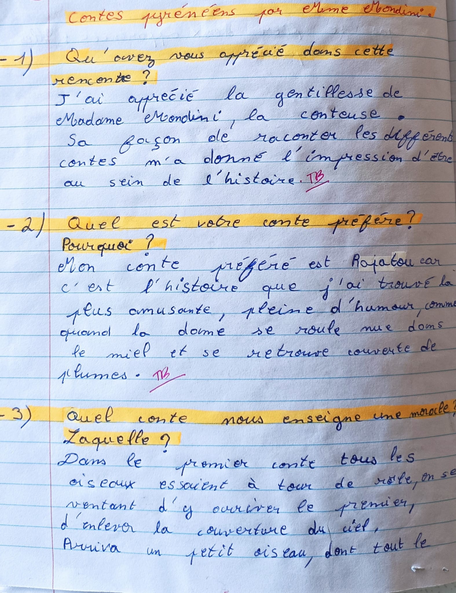 Quelques lettres des élèves après mon passage dans les collèges.