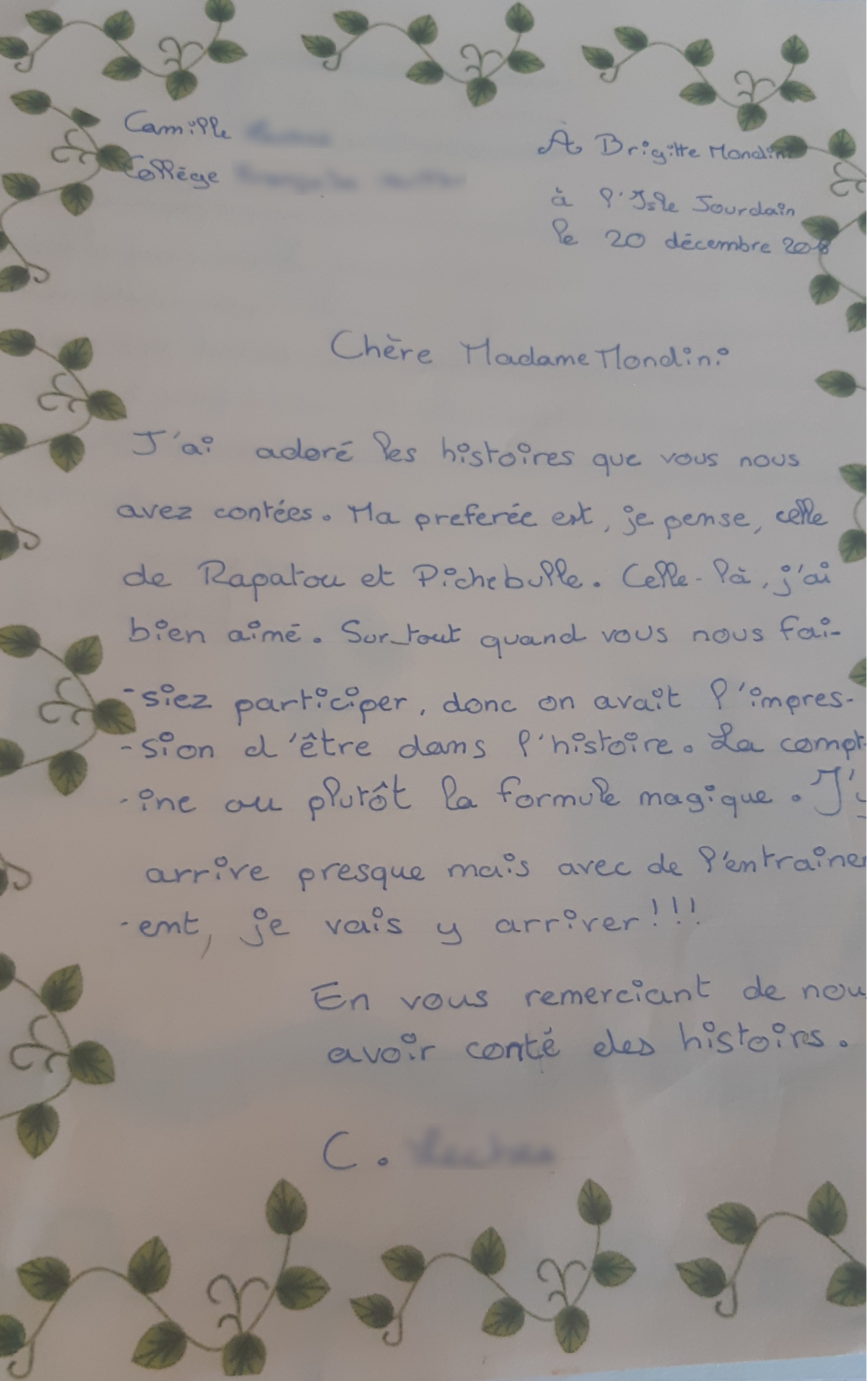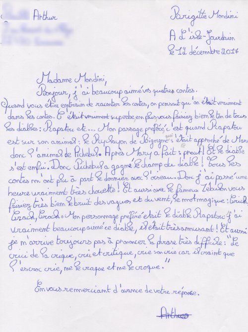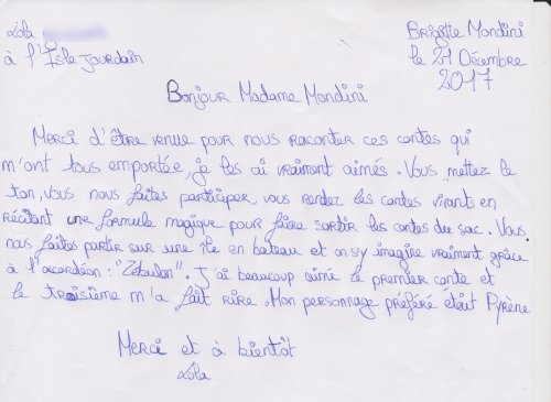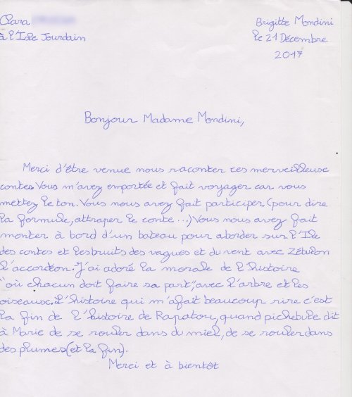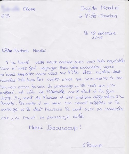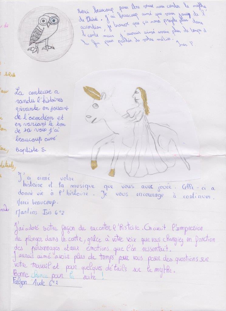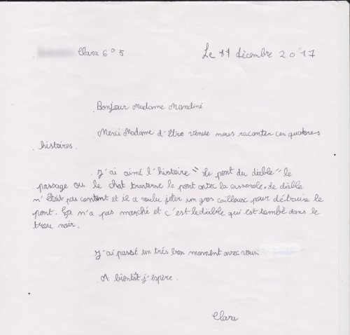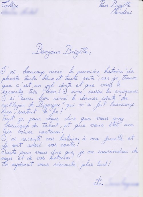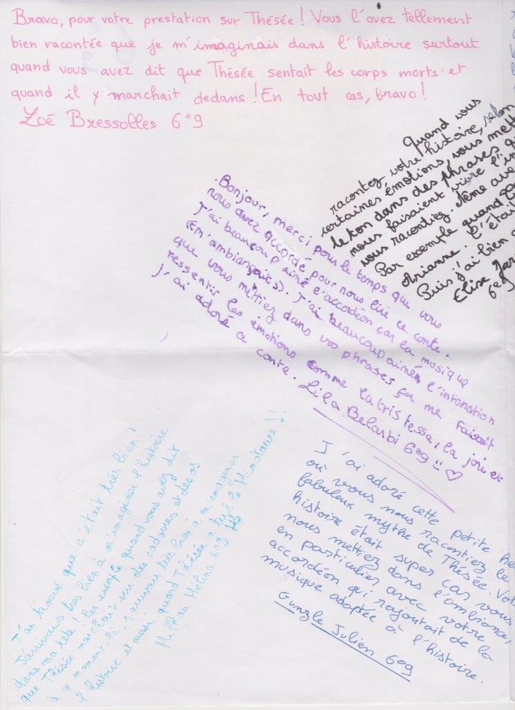 Quelques lettres des élèves après mon passage dans les collèges.