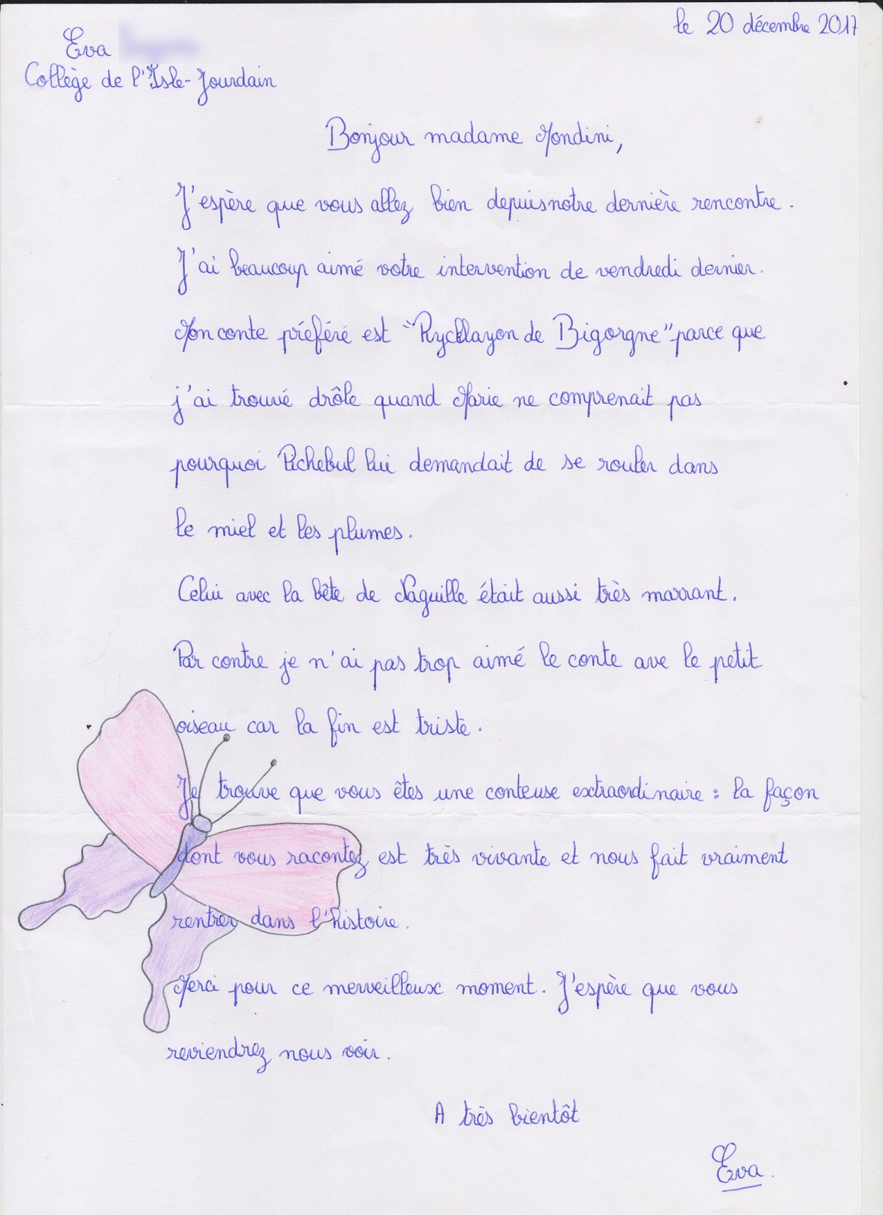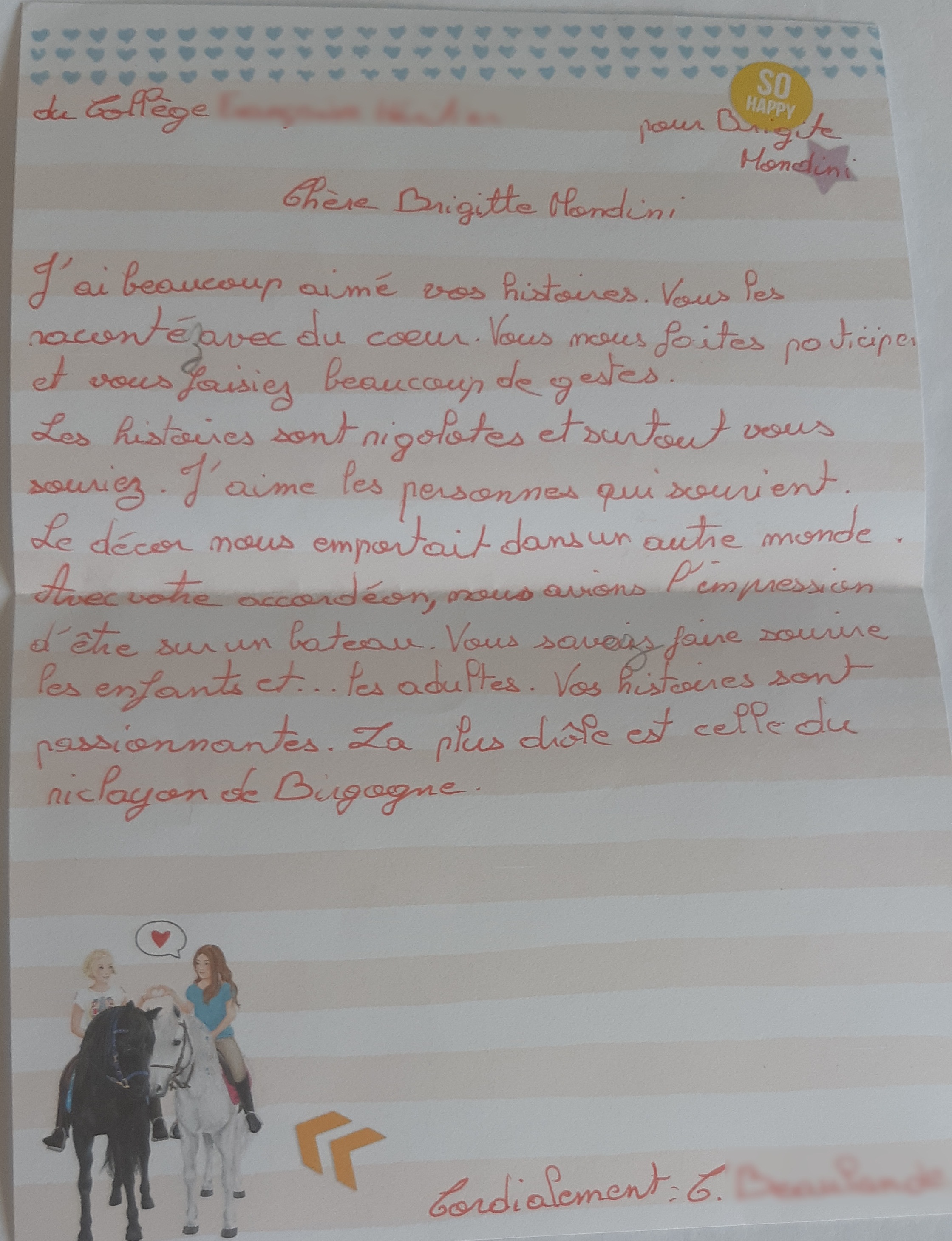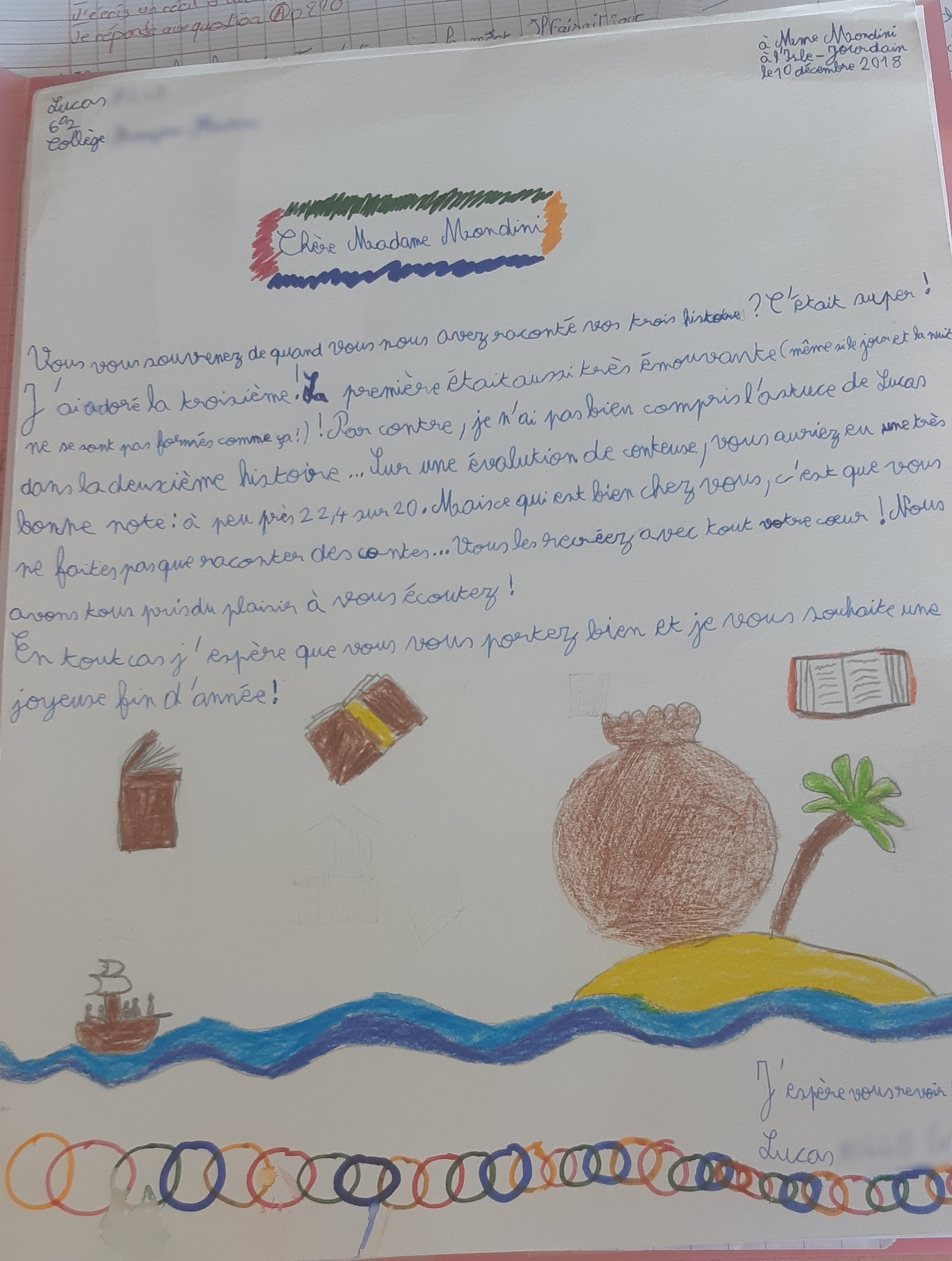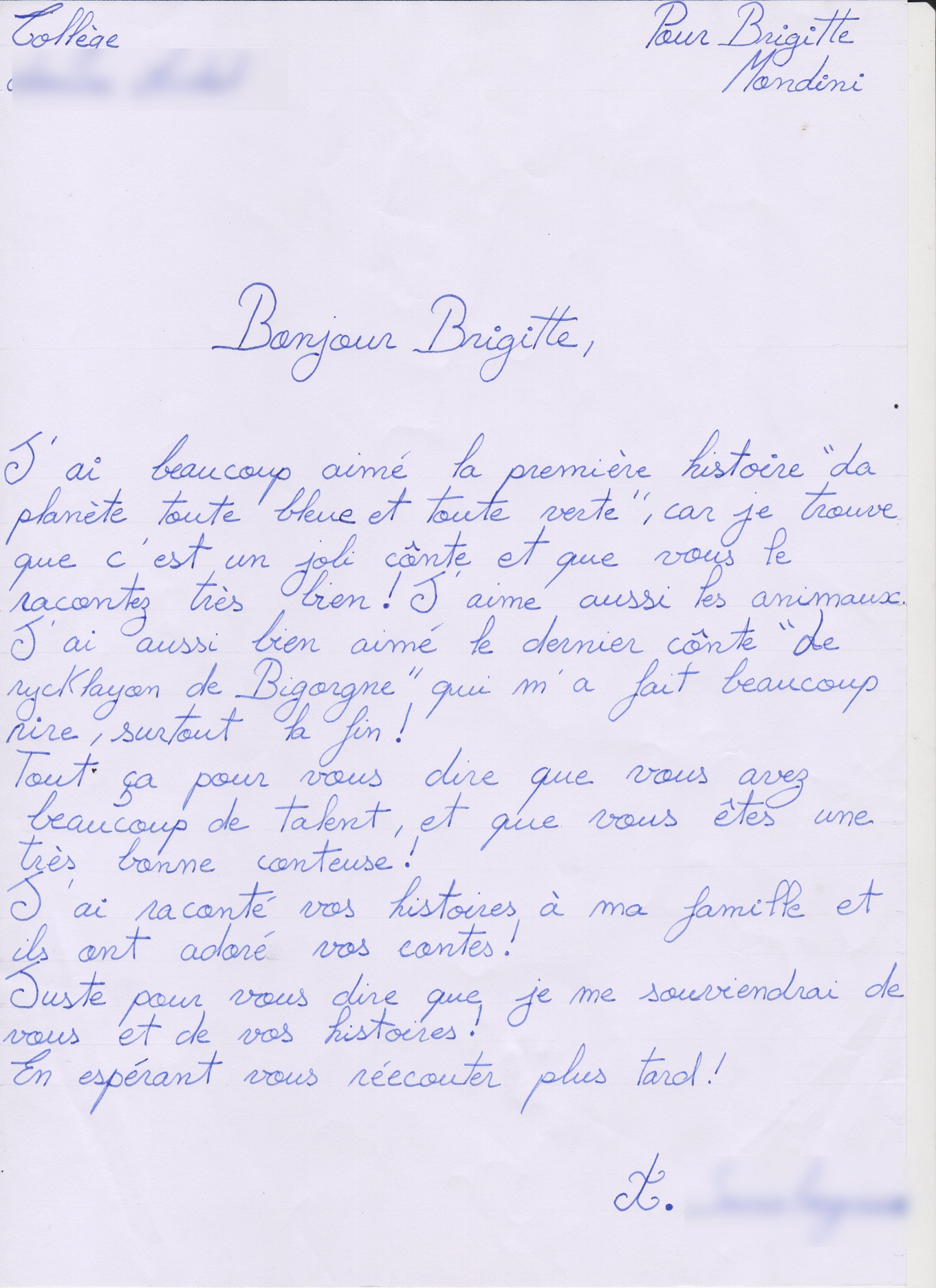 Quelques lettres des élèves après mon passage dans les collèges.