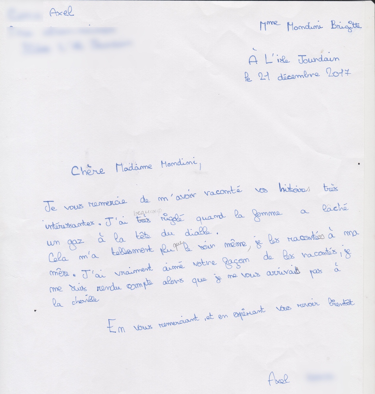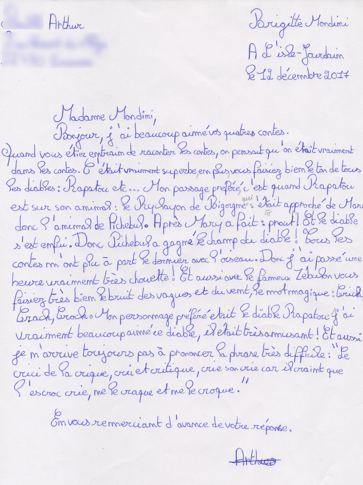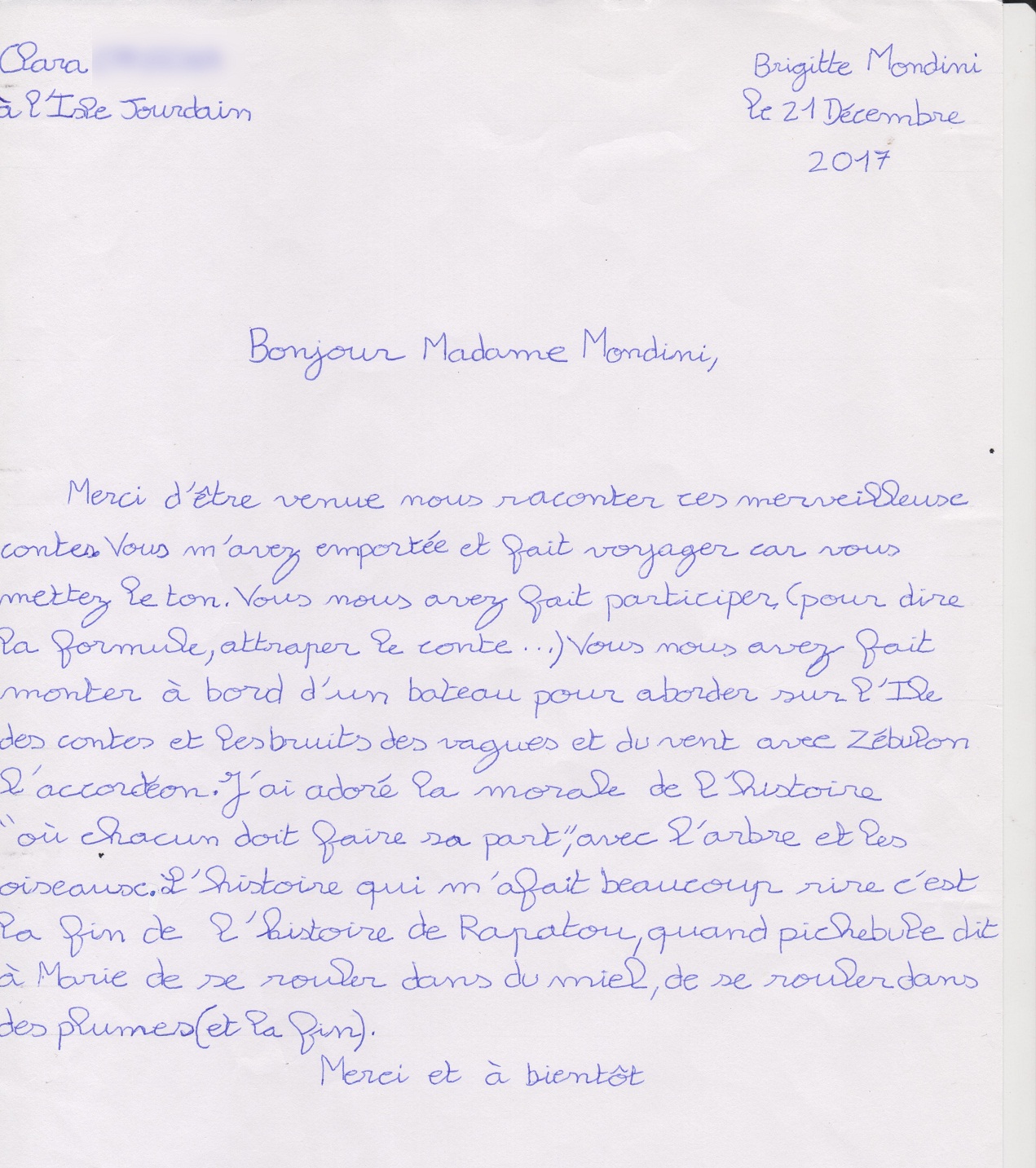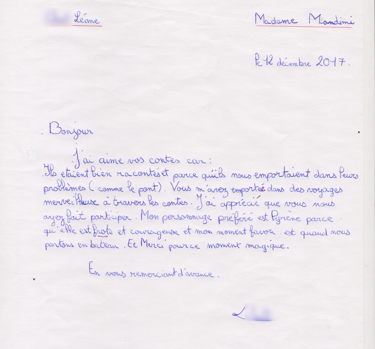 Quelques lettres des élèves après mon passage dans les collèges.